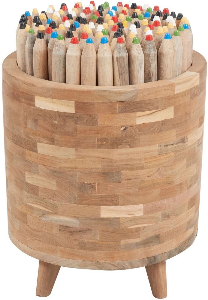 Dekorativ kopp i tre med fargestifter i alle mulige farger.