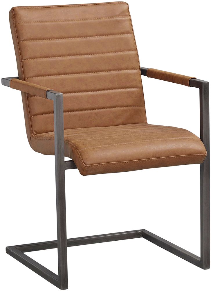 Raw Baker karmstol med cognacfarget kunstlær og ramme i metall. Et riktig stilikon med behagelig svikt og komfort!