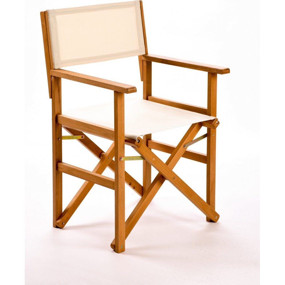 Sammenleggbar stol laget av bøketre med polyestertrekk.