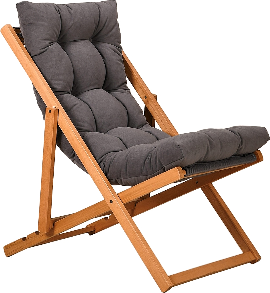 Sammenleggbar fluktstolstol laget av bøketre med polyestertrekk.