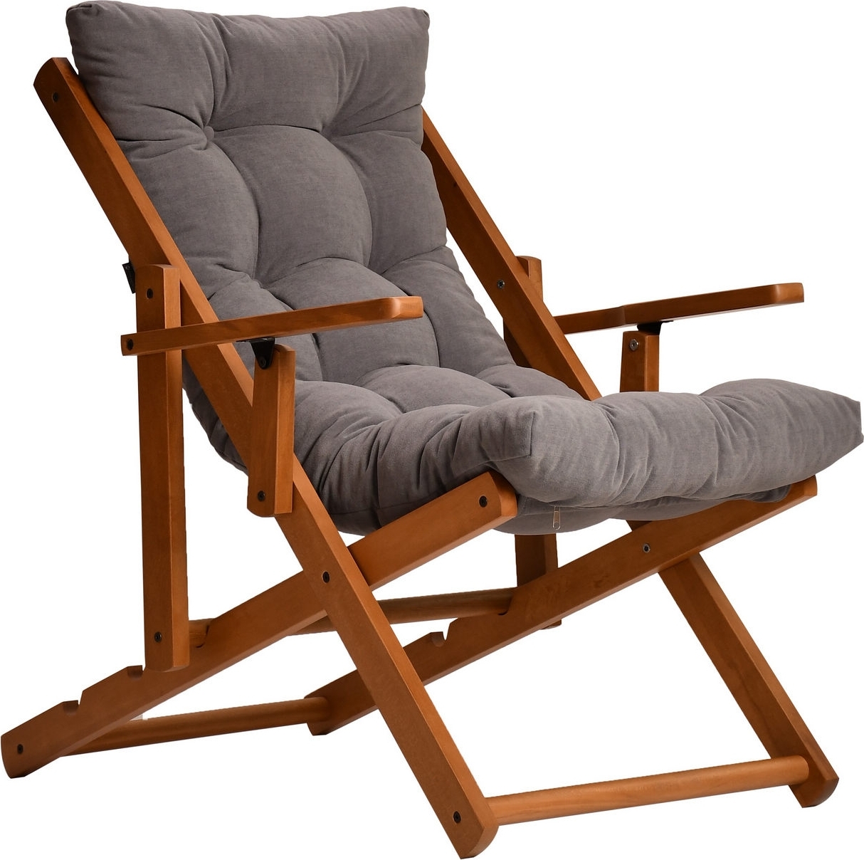 Sammenleggbar fluktstolstol laget av bøketre med polyestertrekk.