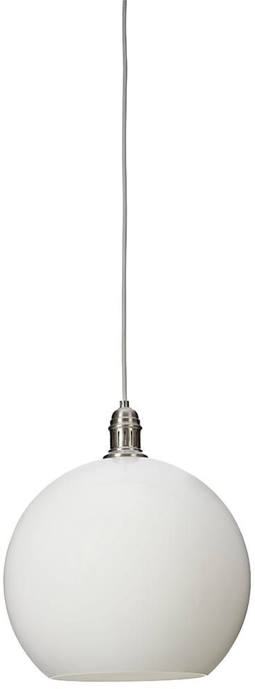En stilren taklampe med en klassisk design. Tilvirket i opal glass med detaljer i børstet krom.