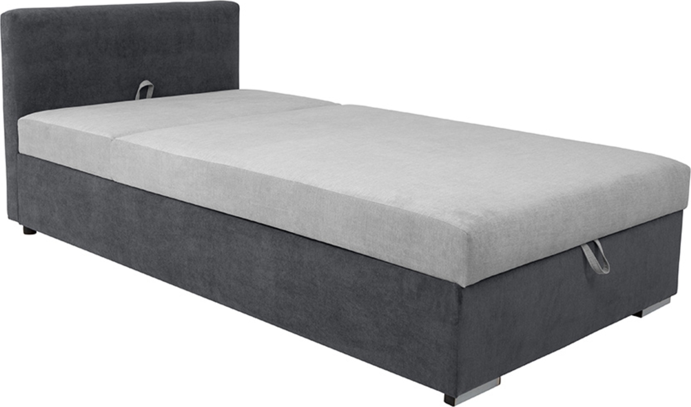 Daybed med oppbevaringsplass, innebygd sengegavl og justerbar tilt i hodeenden. Manuell mekanisme, ingen strømforsyning nødvendig.