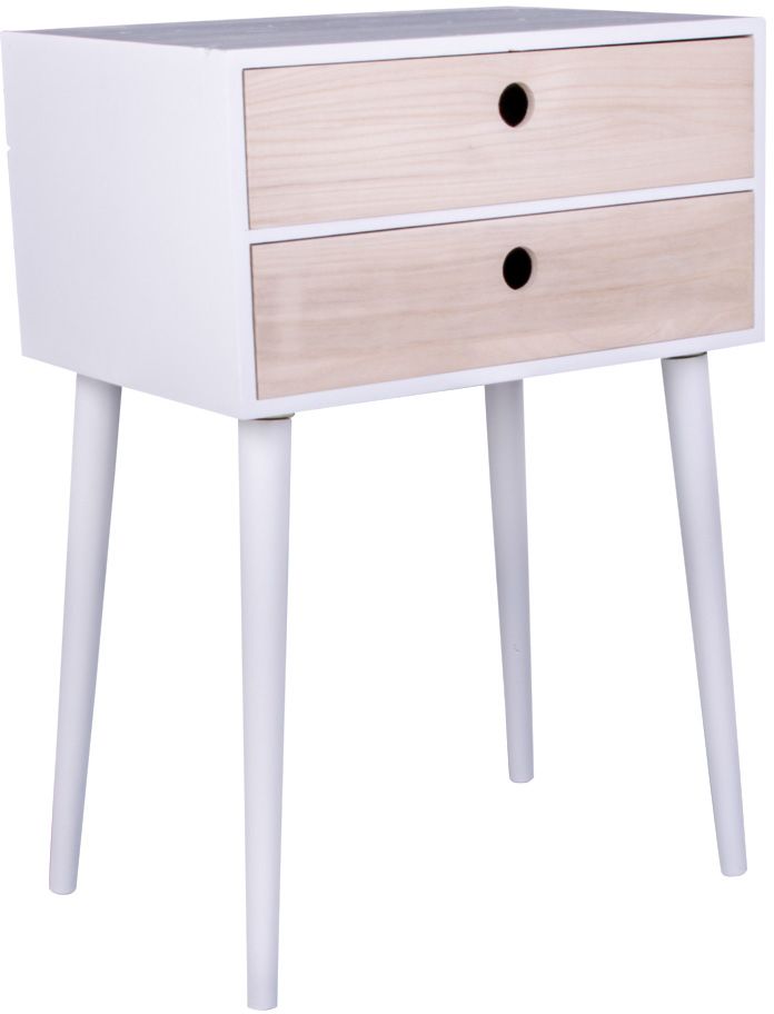 Nattbord i hvitt med to skuffer i naturlig tre.