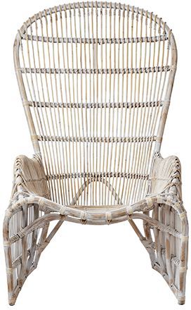 Flott lenestol i hvit rotting. Høy ryggstøtte for god komfort. Kombiner gjerne med en sittepute.