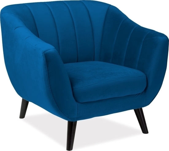 Lenestol i bøk og kryssfiner. Polstret med polyesterstoff i fløyelsimitasjon.