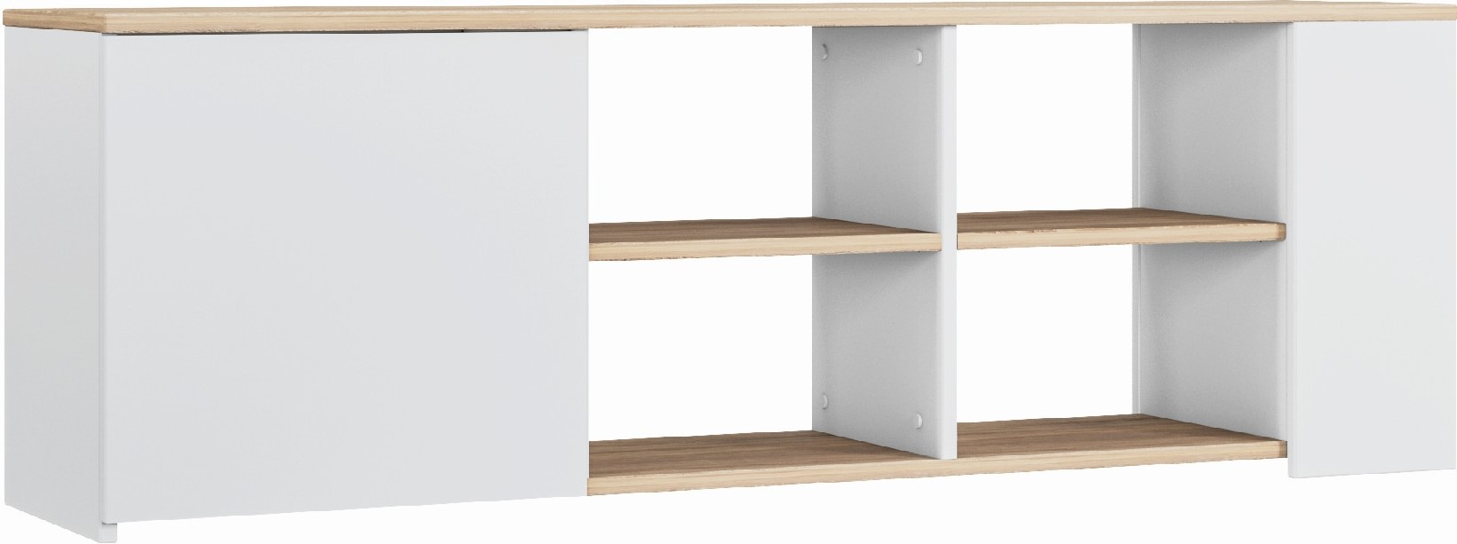 Mediabenk laget av melaminbelagt sponplate. Maks vekt: 70 kg.