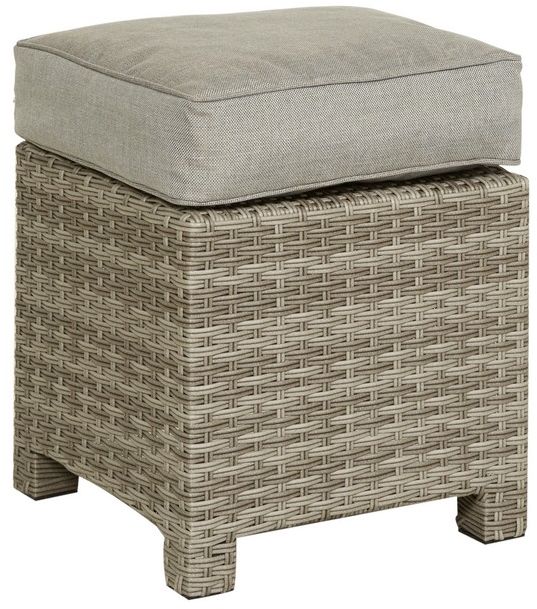 Puff i lysegrå kunstrotting til uteplassen. Denne puffen kan være et bra komplement til våre Rosario sofagrupper. Inkluderer gråbeige pute. Puten er ca. 10 cm.