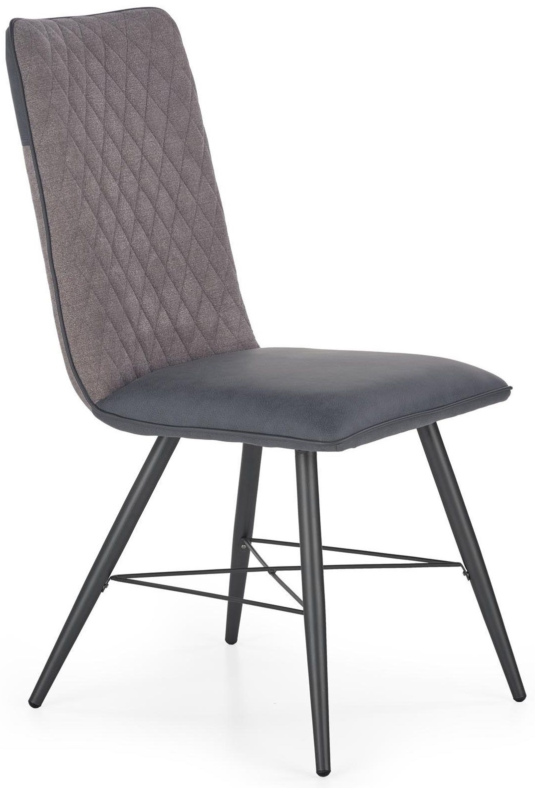 En koselig spisestol med moderne design. Spisestolens understell er tilvirket av pulverlakkert metall og setene er trukket med en herlig blanding av kunstskinn og tøystoff for maksimal komfort.