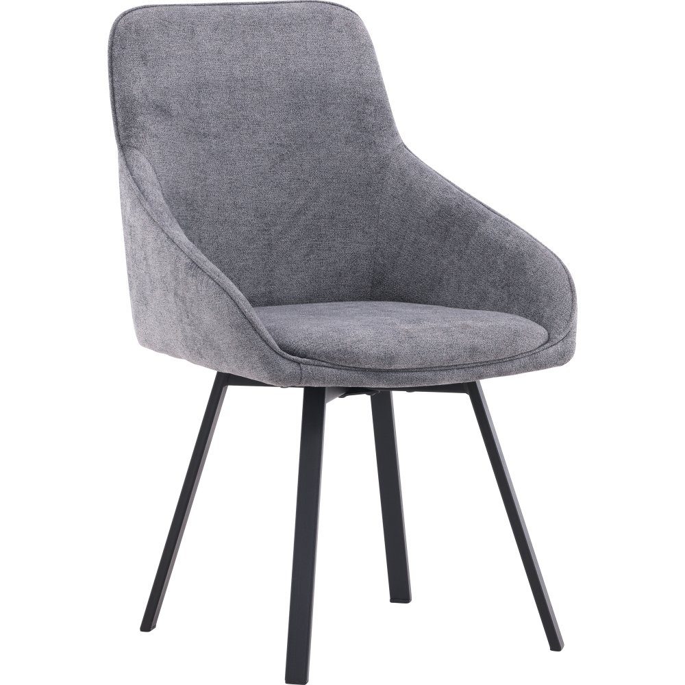 Nydelig stol i skandinavisk design med helpolstret sete, integrerte armlener i grått stoff og lett utsvingte stolbein i sort metall. Det myke setet er polstret for ekstra komfort og inviterer til lange hyggelige middagsstunder. Match med et stilig spisebord og du får en komplett spisegruppe for hjemmets hjerte!