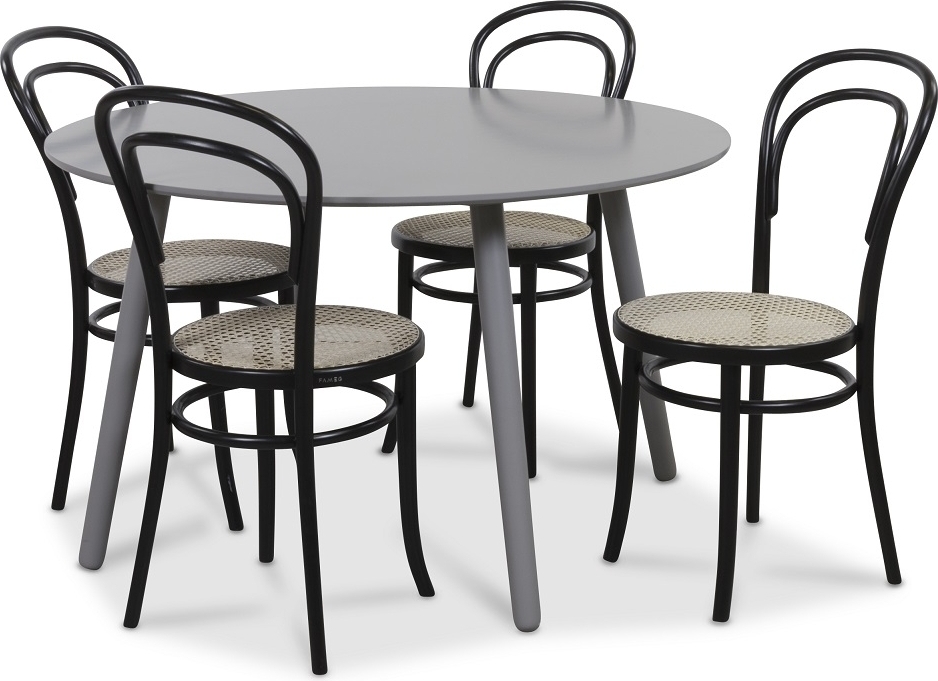Rosvik spisegruppe grått rundt bord med 4 st Thonet stoler - Grå / Svarte