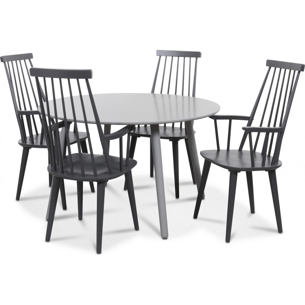Rosvik spisegruppe grått rundt bord med 4 stk grå Dalsland Pinnstolar - Grå
