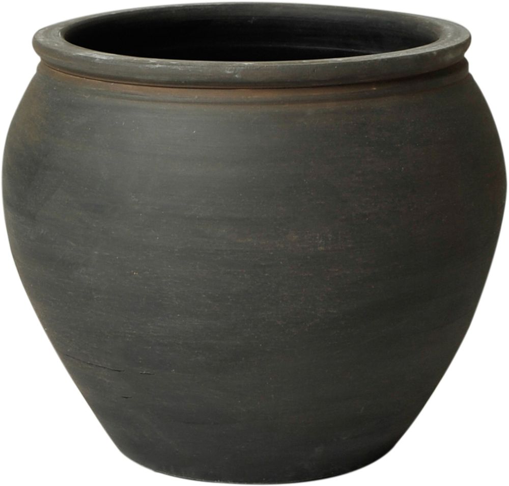 Keramikk-krukke i svart, oval form.