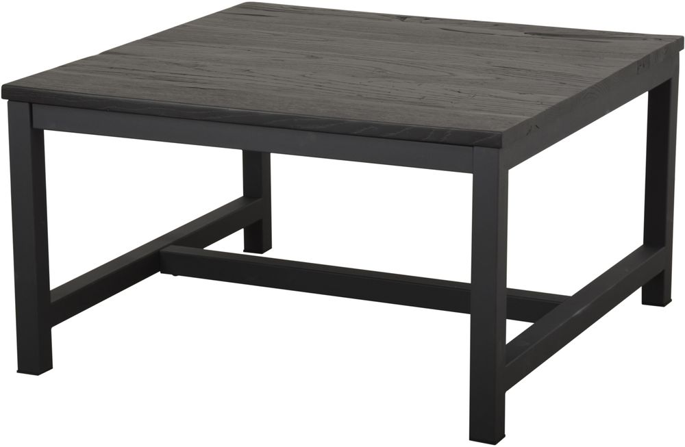Klassiskt firkantet salongbord med topplate i solid svartlakkert alm, stamme av gråsvart metall. Finnes også i rektangulær utførelse.