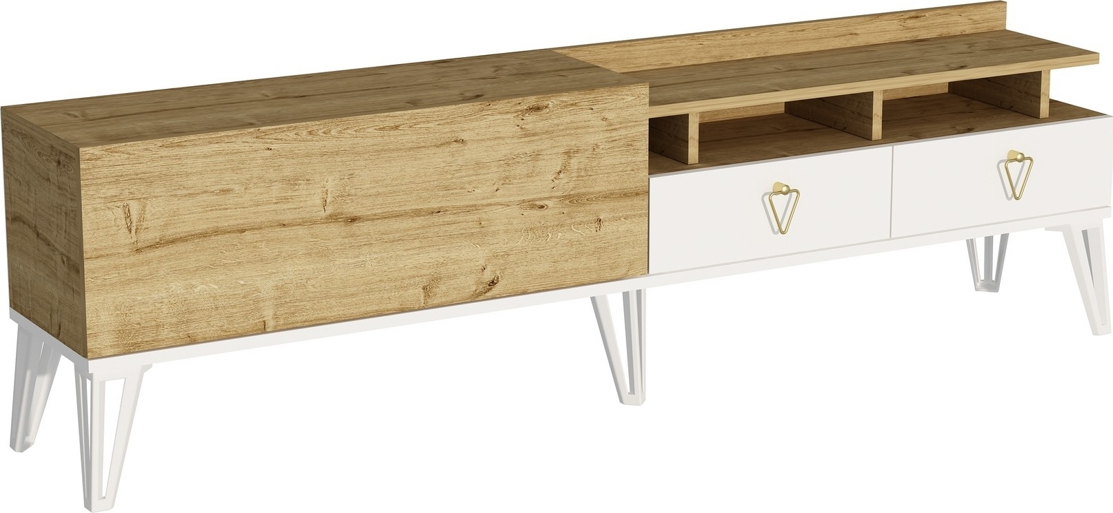Royal mediebenk - Hvit/eik