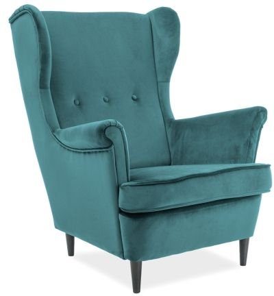 En koselig lenestol med et stilrent design. Lenestolen er trukket med et meget behagelig fløyelsstoff for maksimal luksus og komfort og understellet er av solid tre med en herlig wenge-finish.