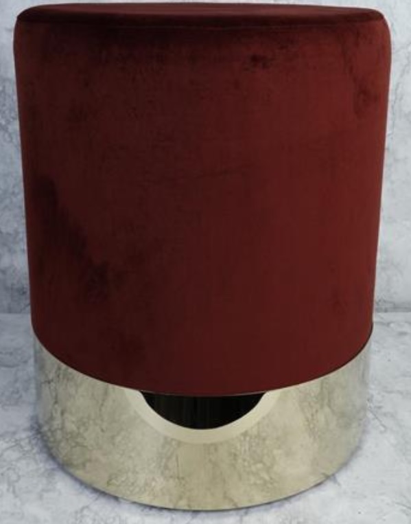 Rund sittepuff sylinderformet - Bordeaux (Fløyel) / Messing
