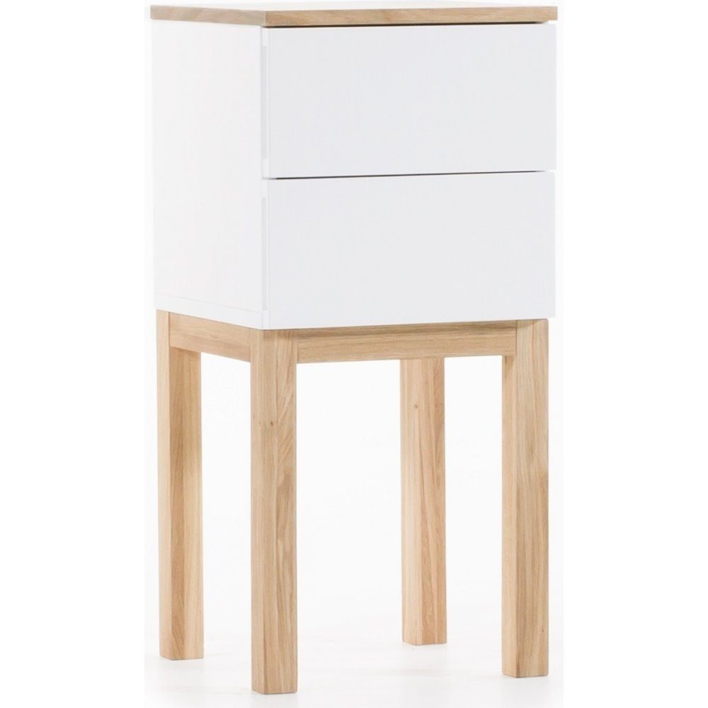 Sängbord vit med ek 75 cm + Møbelføtter