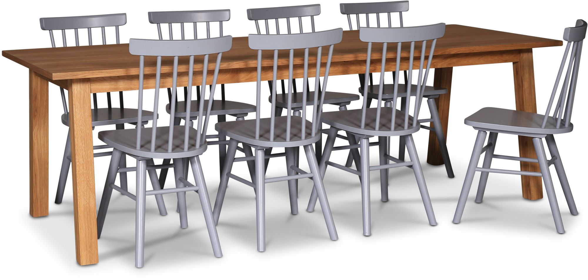 Saltsjö spisegruppe, 240 cm, inkludert 8 stk. grå Orust pinnestoler - Oljet eikefiner