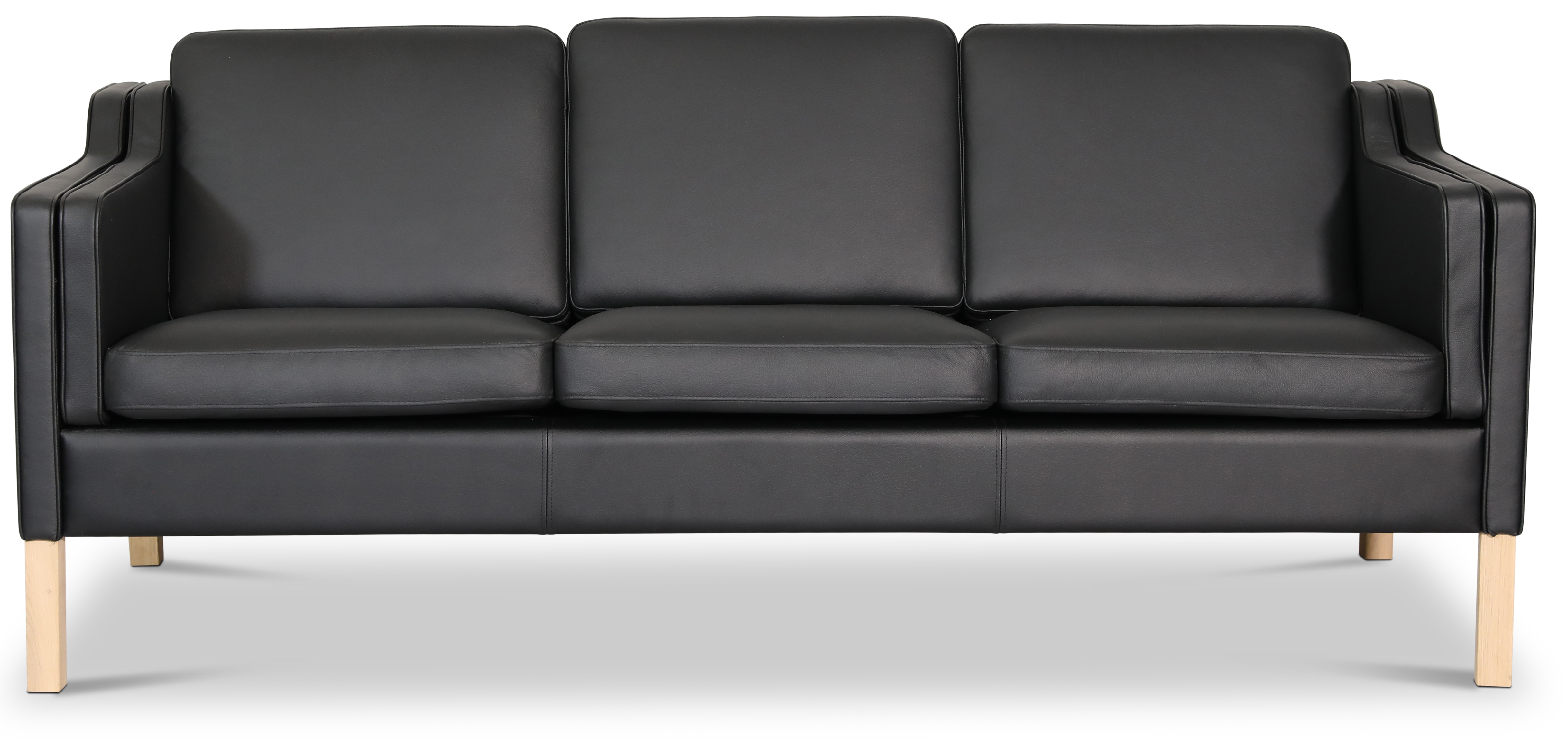Salvatore 3-seters sofa i skandinavisk klassisk design. Sofaen kommer i mykt og slitesterkt svartfarget lær med ben i hvitoljebehandlet eik. Polstring i sete- og ryggputene er 45 kg kaldskum av høy kvalitet med topp av polyetylenvatt. Læret er nøye utvalgt fra Italia og har høy kvalitet. På baksiden og sidene er sofaen trukket i svart spaltlær.