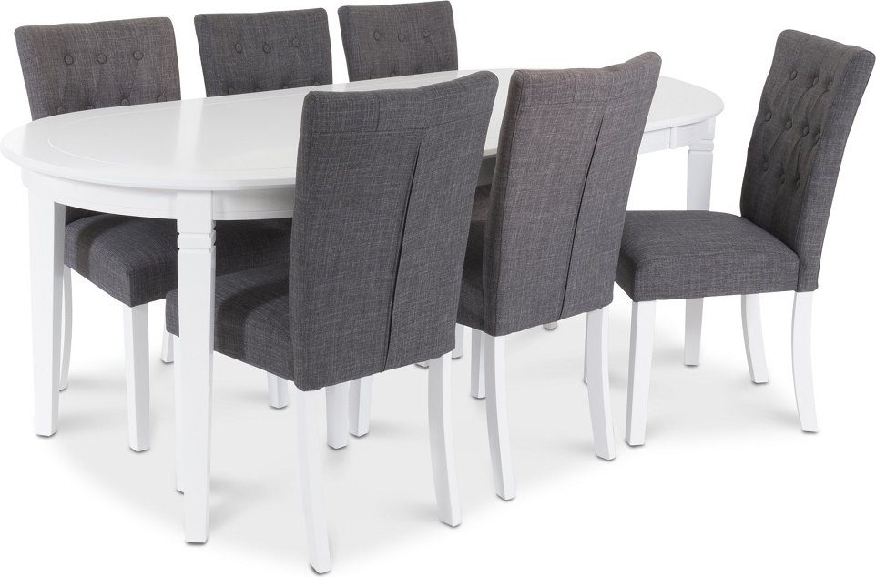 - Sandhamn Food Group; Ovalt bord med 6 Crocket stoler i grått stoff
