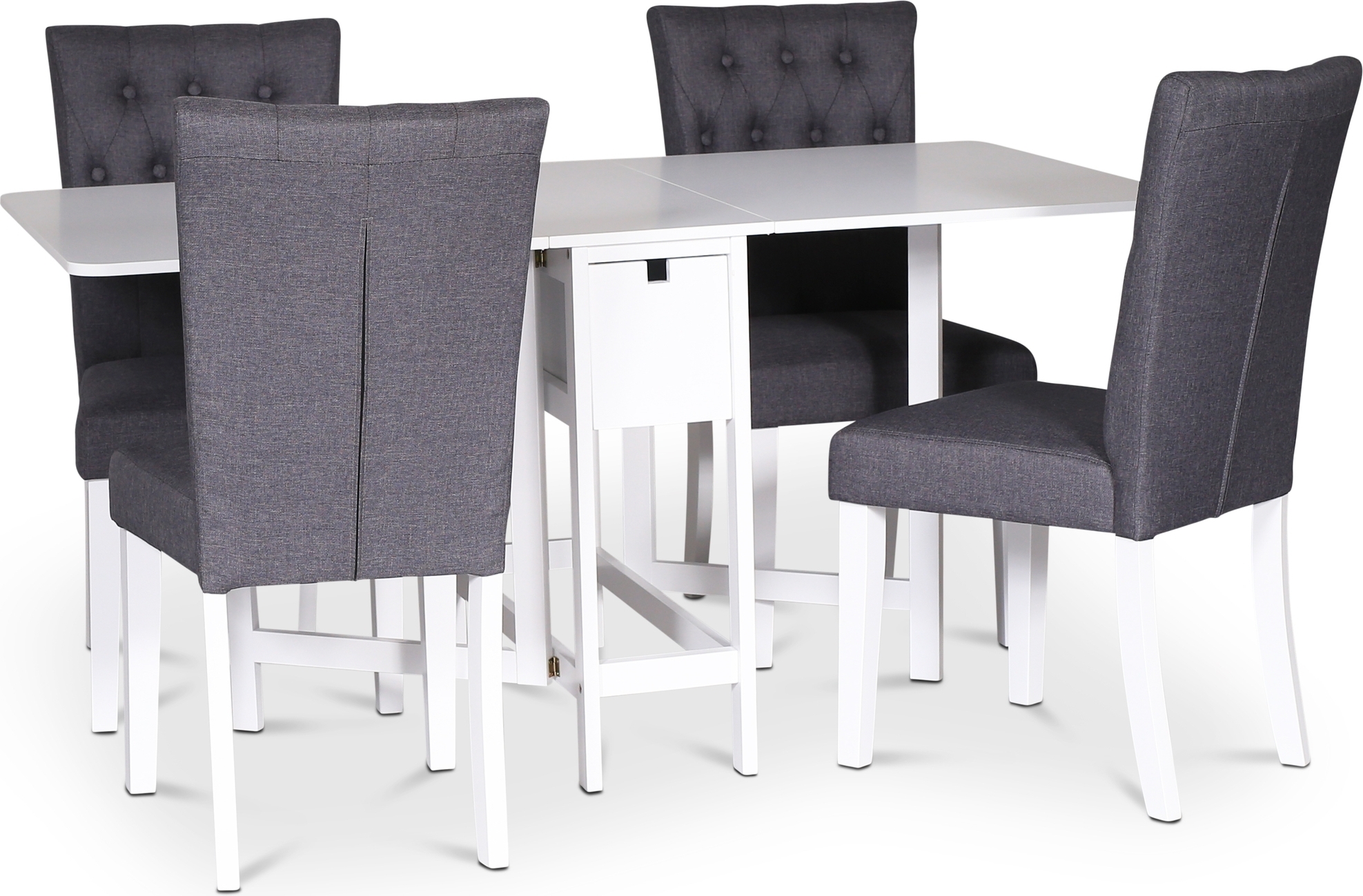 Sandhamn spisegruppe; Klaffbord med 4 Crocket-stoler i grått stoff