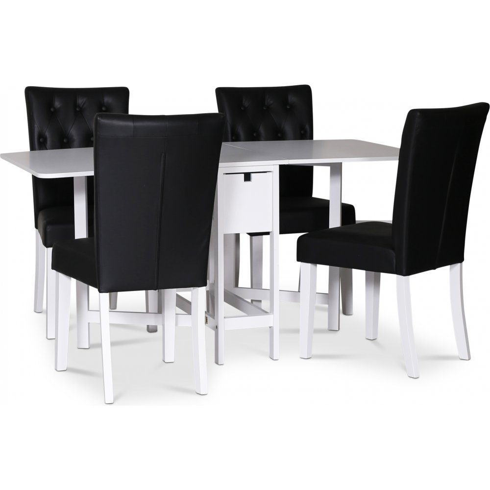Sandhamn spisegruppe; klaffbord med 4 Crocket-stoler i svart PU