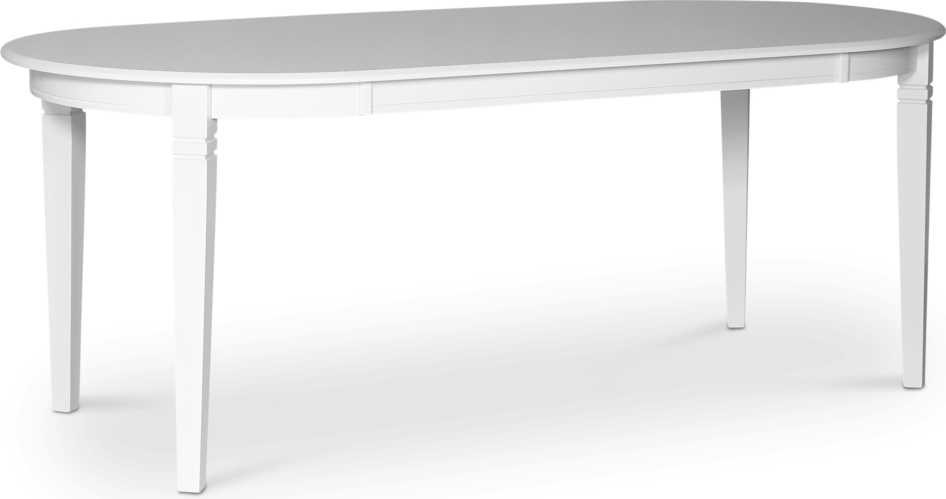 Sandhamn spisegruppe i klassisk design. Stilig ovalt spisebord med hvitlakkerte ben og bordplate.