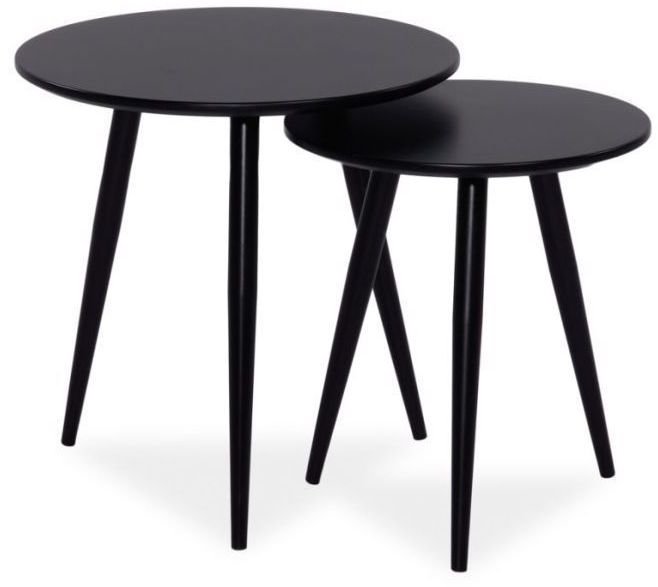 Et par fine settbord med et stilrent design. Bordene er laget i svartlakkert tre og MDF.