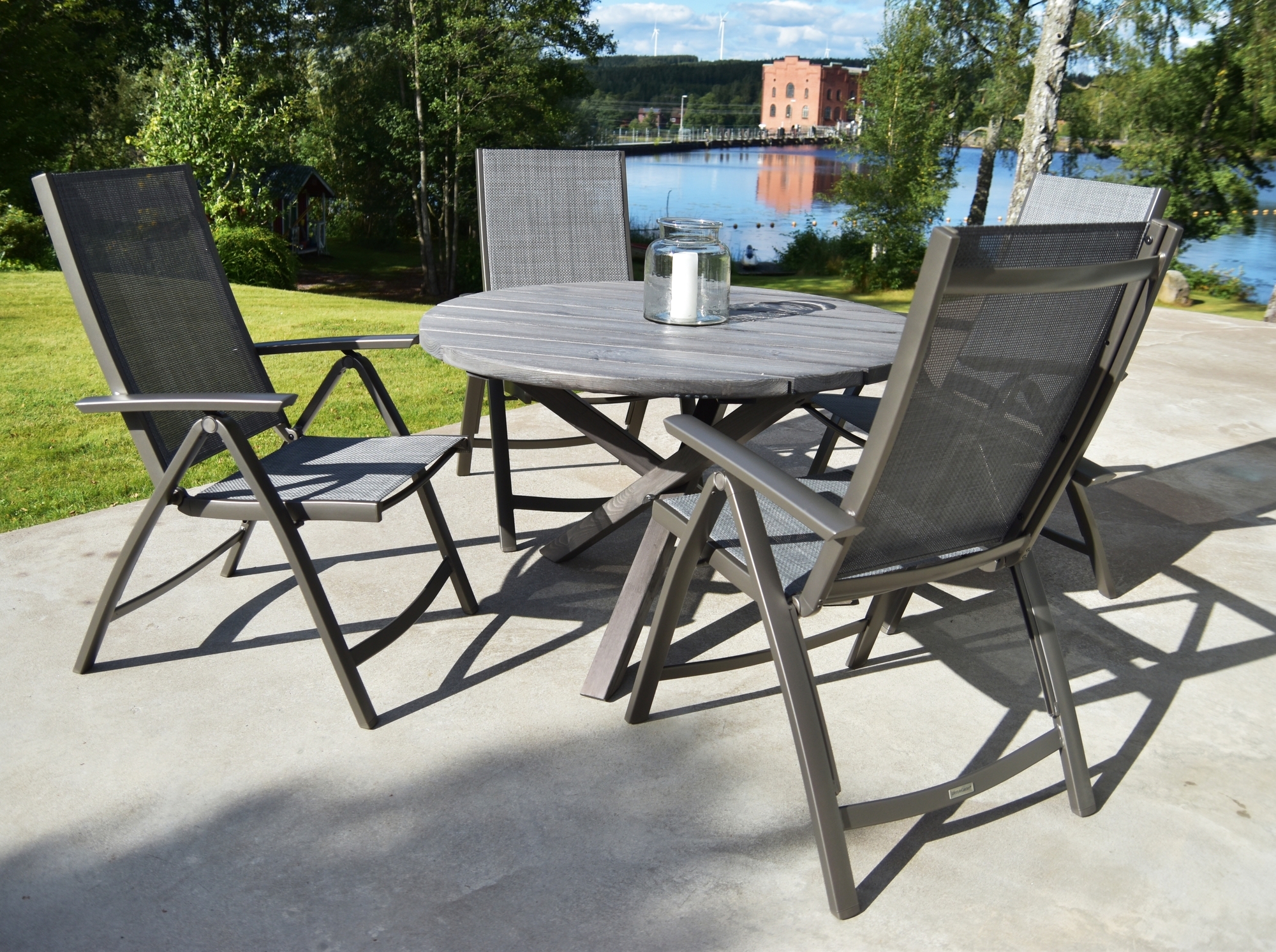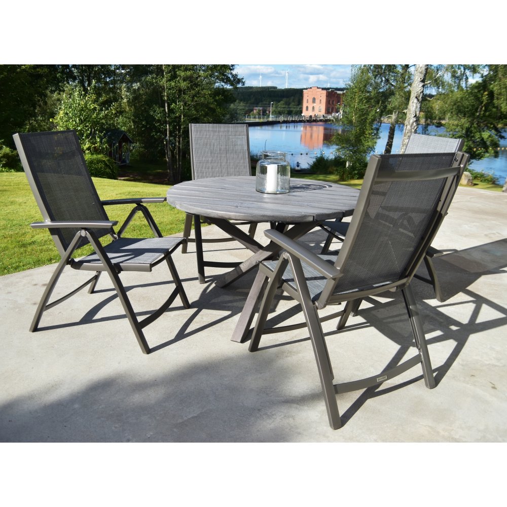 - Scottsdale utegruppe. Bord på Ø112 cm inkl. 4 Solana posisjonsstoler - Shabby Chic-grå