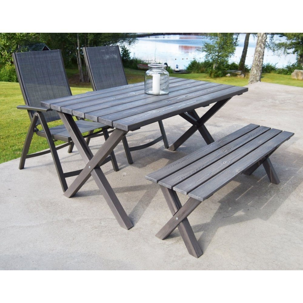 Scottsdale utegruppe. Bord på 150 cm, inkl. 2 Solana posisjonsstoler og benk - Shabby Chic-grå