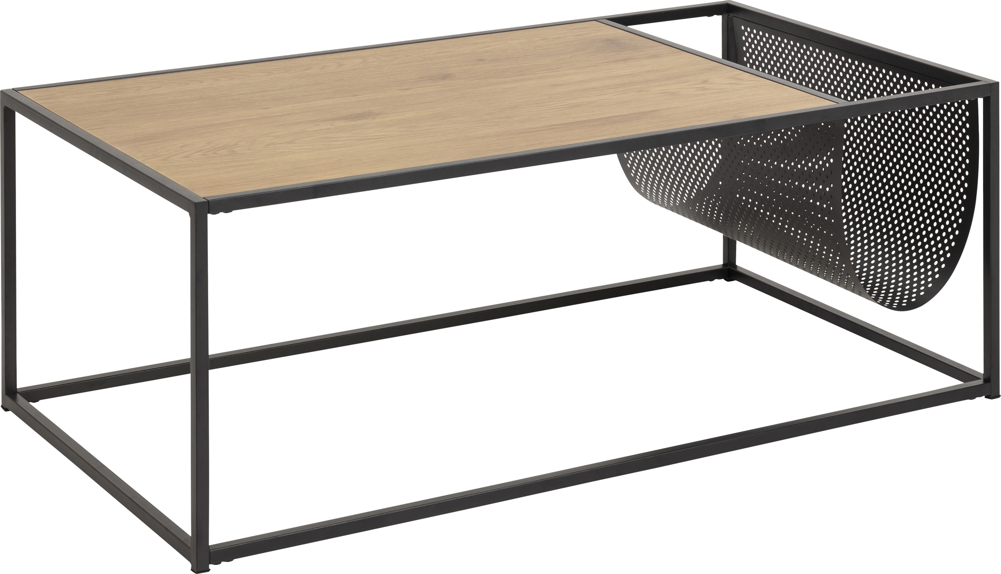 Salongbord med pulverlakkerte metallben. Bordplate laget av dekorativt papir og MDF.