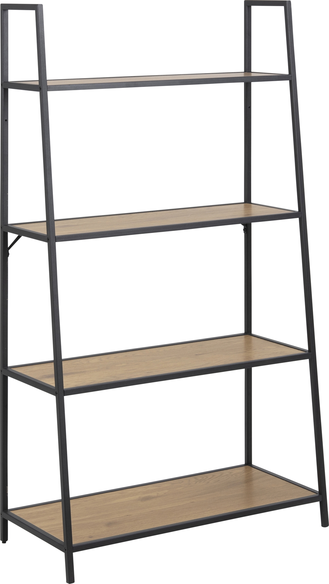 Bokhylle. Pulverlakkert metallramme. Hylle laget av MDF og dekorativt papir.