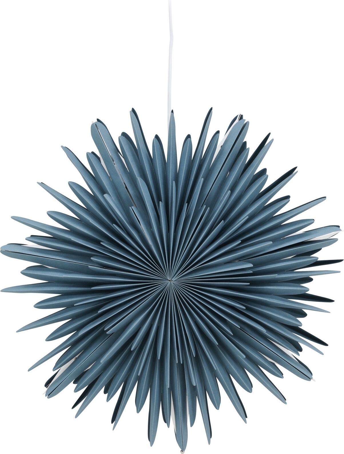 Med Sälen taklampe kan du skape en varm og koselig atmosfære både under de mørke dagene vinter og høst og under julefeiringen. Denne grå/blå papirstjernen, formet som en blomstrende stjerne i havets nyanser, vil definitivt imponere deg og dine gjester. Forseglingen er laget av flere lag med brettet papir, som gir harmonisk og behagelig belysning samtidig som den skaper vakker dybde i rommet. Den diskrete hvite ledningen gjør at lampen smelter naturlig inn i ethvert rom. Velg mellom ulike farger og størrelser for å finne den perfekte Sälen-lampen som passer ditt hjem best. Enten du foretrekker et subtilt preg av blå nyanser eller en mer stilig fargekombinasjon, vil Sälen spre varme og hygge i hjemmet ditt! Mål: 46 cm.