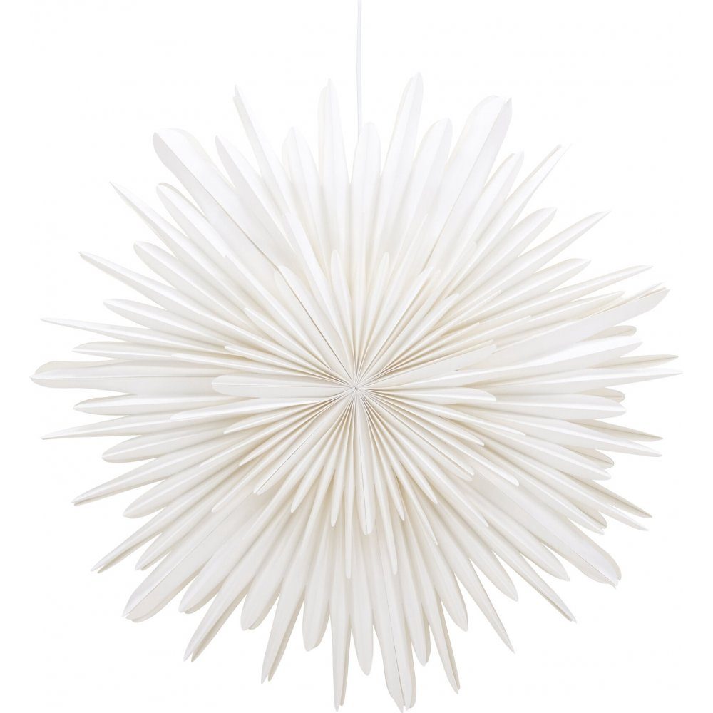Denne vakre hvite papirstjernen er den perfekte belysningen for å skape en personlig og koselig atmosfære i hjemmet ditt! Enten det er under høstens mystiske kvelder eller under julens festligheter, vil taklampen fra Sälen-serien spre en varm og innbydende glød som umiddelbart vil forvandle rommet ditt til en fredelig oase. Denne hvite taklampen kommer i flere forskjellige størrelser, slik at du kan velge den som passer perfekt til rommet ditt. Heng den i kjøkkenvinduet, soverommet eller ved sofaen for å spre det sjarmerende lyset som er etterlengtet på mørke dager. Lampens stjerneformede design gir også flere praktiske fordeler. Takket være dette kan lampen spre lyset jevnt i alle retninger og skape behagelig og mykt lys. Plasser den der den mottar mest kjærlighet og takknemlighet og nyt favorittaktivitetene dine som lesing, håndverk eller bare slappe av, i en atmosfære fylt med fred og harmoni! Mål: 80 cm.