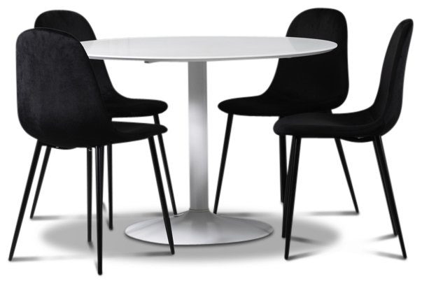 Seat spisegruppe, rundt spisebord med 4 stk Carisma fløyelsstoler - Hvit/Svart