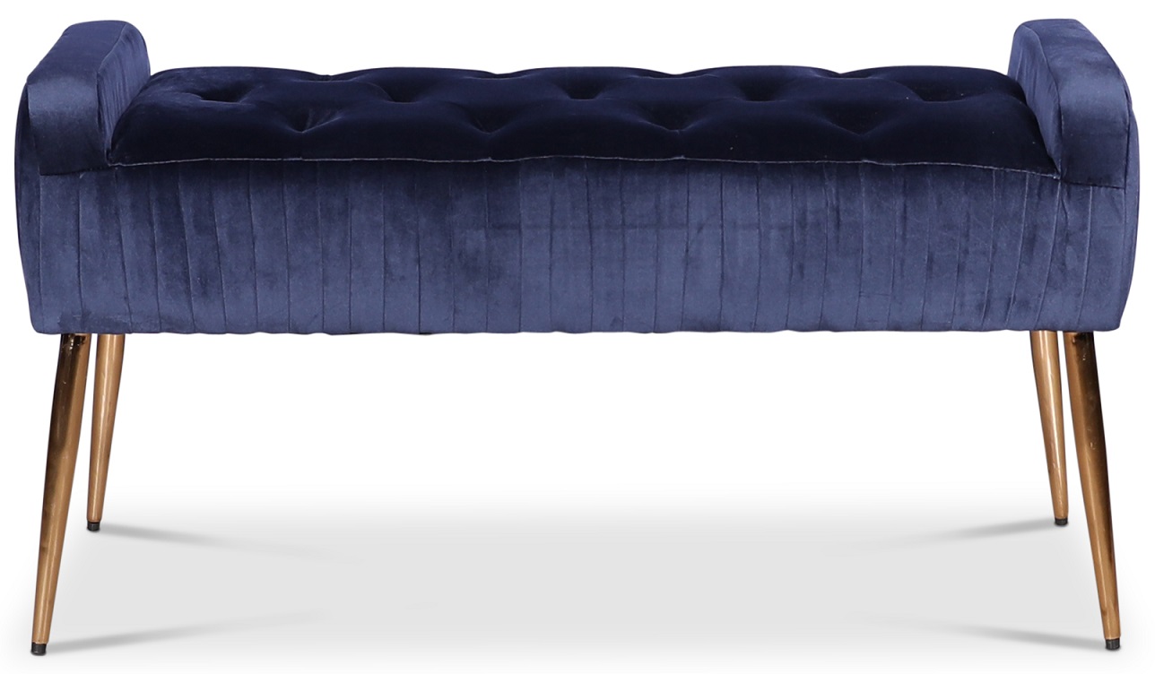 Wrinkle Sengebenk / sittebenk kledd i mørkeblå fløyel og med messingben.