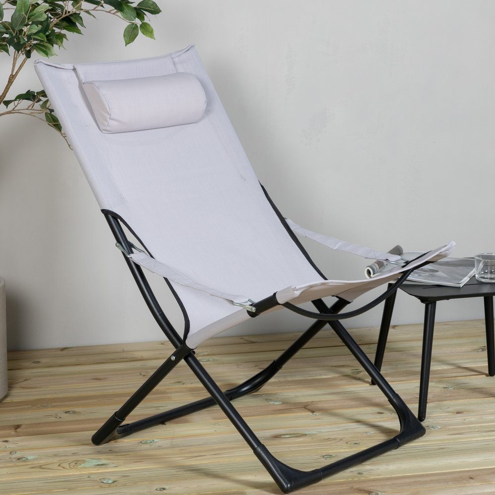 Med solsengen Sevilla trenger du ikke velge mellom noe behagelig eller praktisk - den har begge egenskapene! Setet har et grått stoff med en pute som kan vendes bort og den har en sort aluminiumsramme. Ettersom stolen enkelt kan slås sammen er den perfekt å ha med seg ned til stranden eller ut i hagen. Stolen passer også godt på de mindre uteplassene dersom du ønsker å sette møblene enkelt vekk etter bruk.