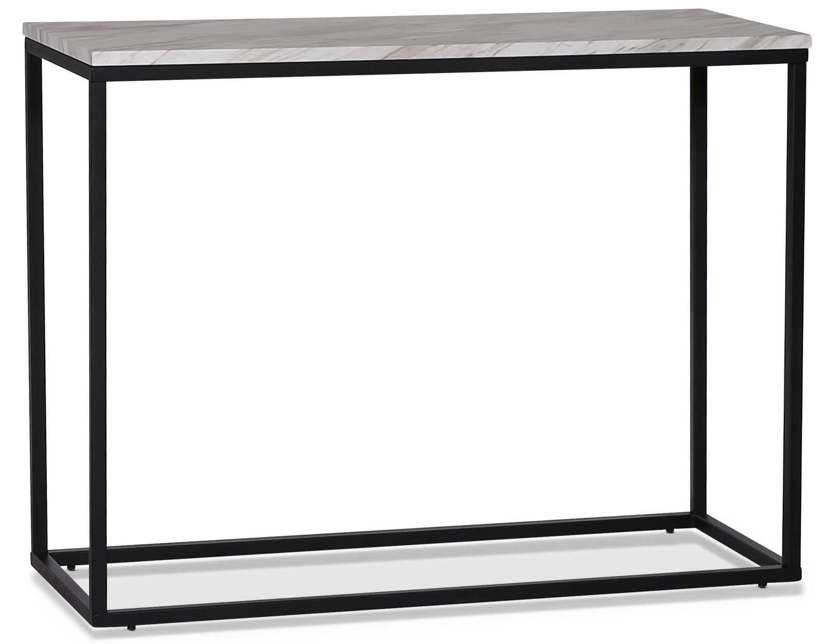 Shanghai konsollbord med bordplate i lys marmor imitasjon (MDF) med svartlakkert metallunderstell. Shanghai er et stilrent konsollbord med vakker design og hardfør og slitesterk overflate.
