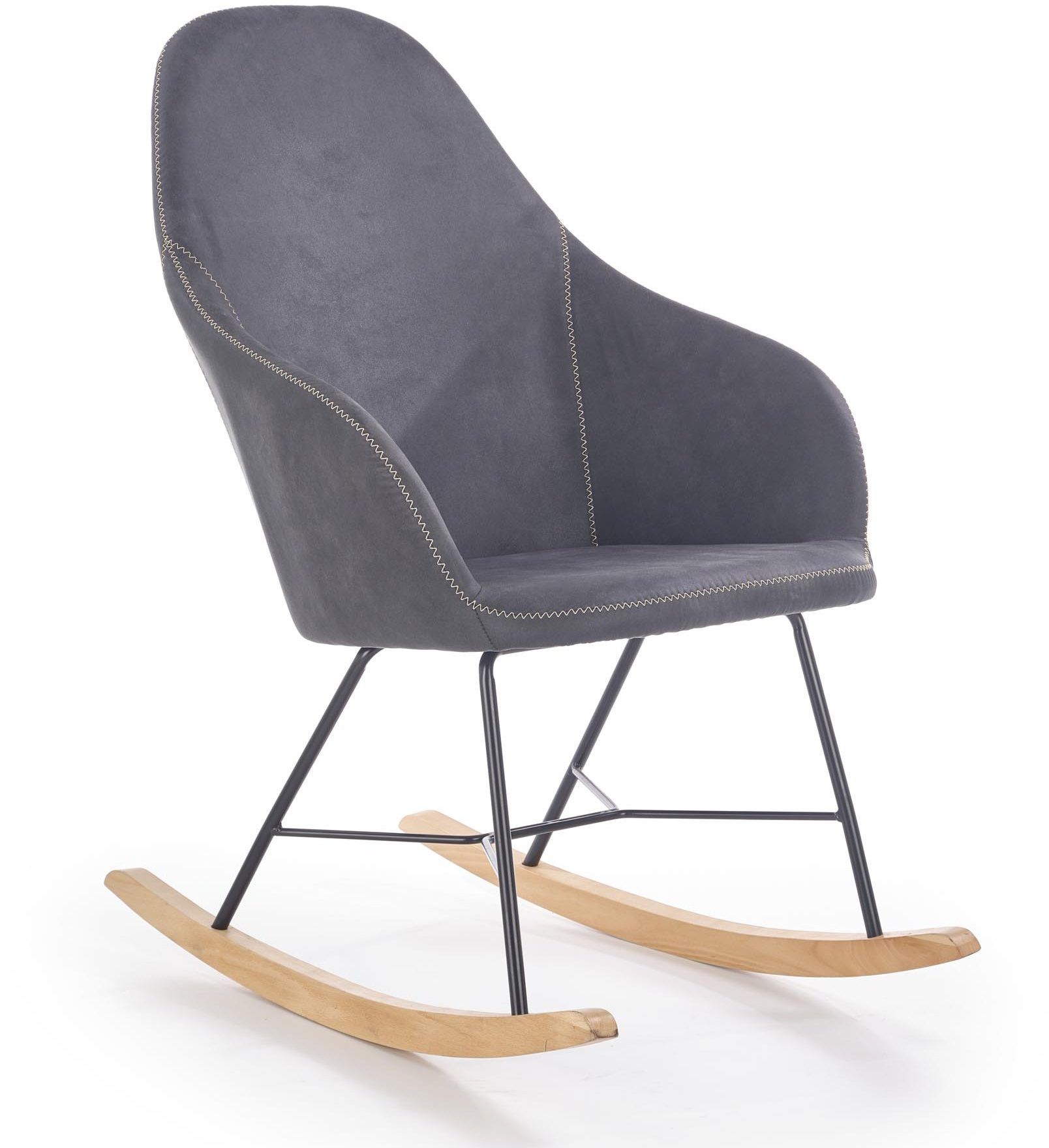 En koselig gyngestol med et stilrent design. Gyngestolen er produsert av solid tre med et veldig behagelig trekk i kunstskinn for maksimal komfort og ramme laget av pulverlakkert metall.