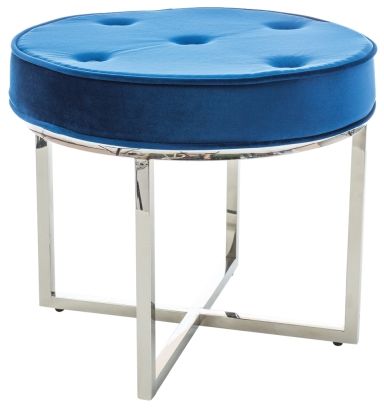 En herlig puff med en stilren design. Puffen er kledd med et veldig behagelig fløyelstoff for maksimal luksus og komfort. Selve understellet er tilvirket av forkrommet metall.