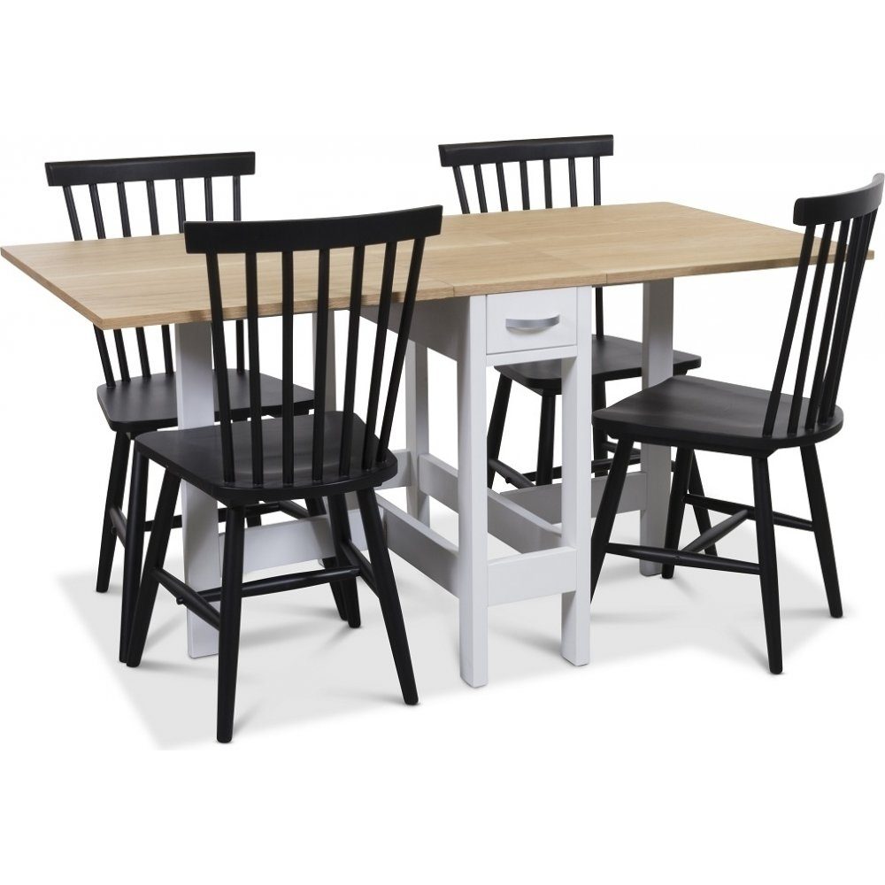 Signum spisegruppe Slagbord hvit/eik med 4 sorte Karl knaggstoler