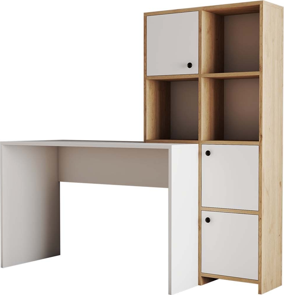 Silence skrivebord 156,8 x 51,5 cm, høyre - Hvit/eik