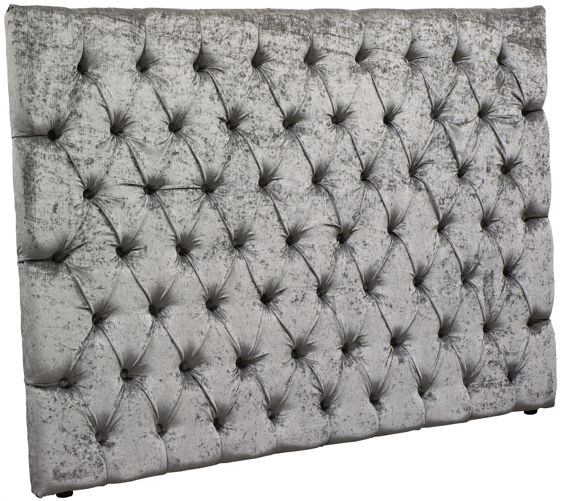 Silver queen er en sengegavl med et luksuriøst pikert fløyelsstoff av høyeste kvalitet! Stoffet glitrer i ulike sølvnyanser avhengig av hvordan lyset faller.