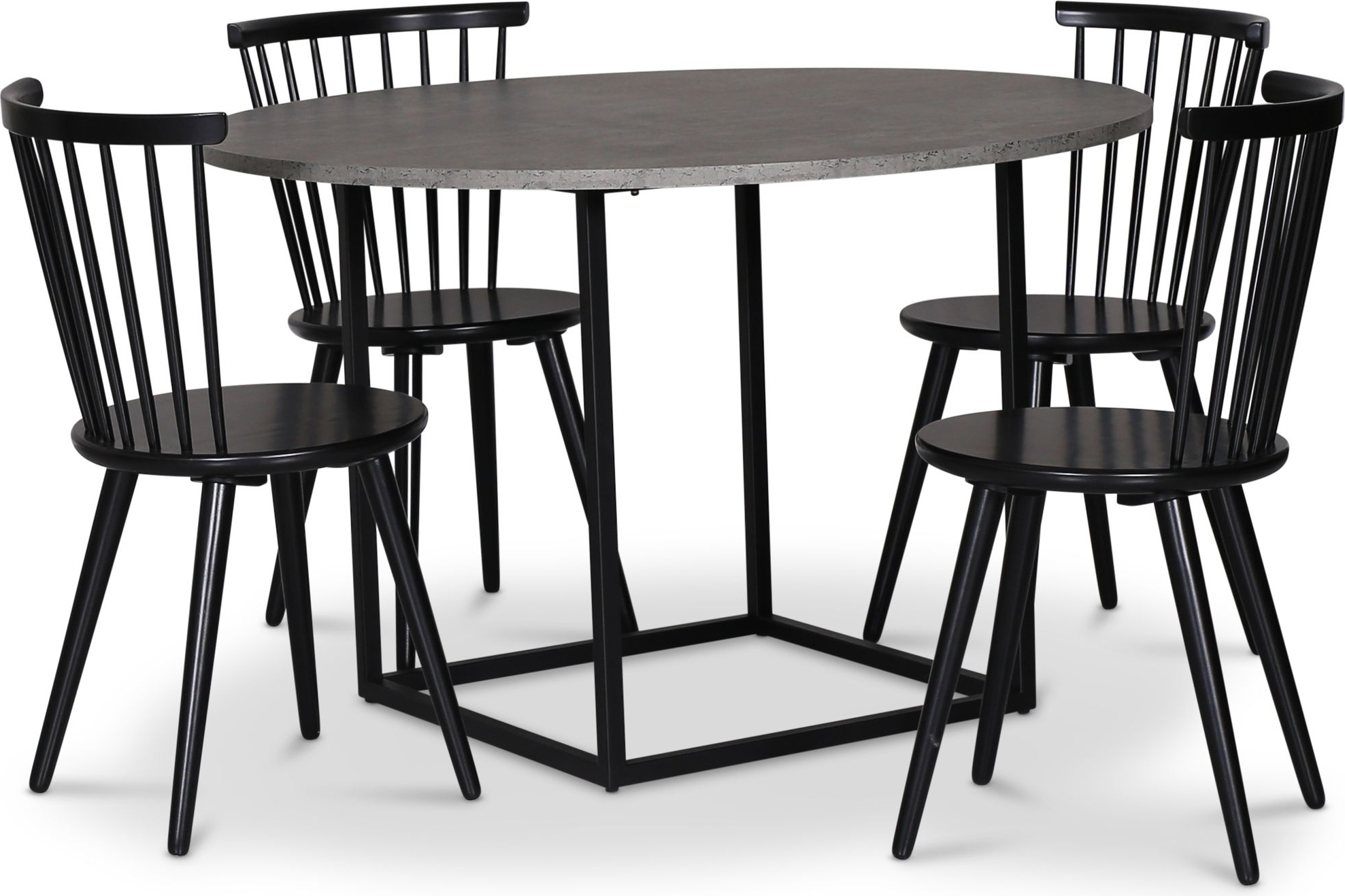 - Sintorp spisegruppe, rundt spisebord Ø115 cm inkludert 4 stk. Castor pinnestoler - betong (laminat)