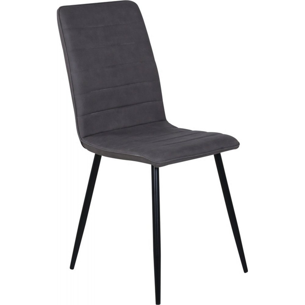 Spisestol laget av jern og kryssfinér, trukket med mikrofiberstoff.