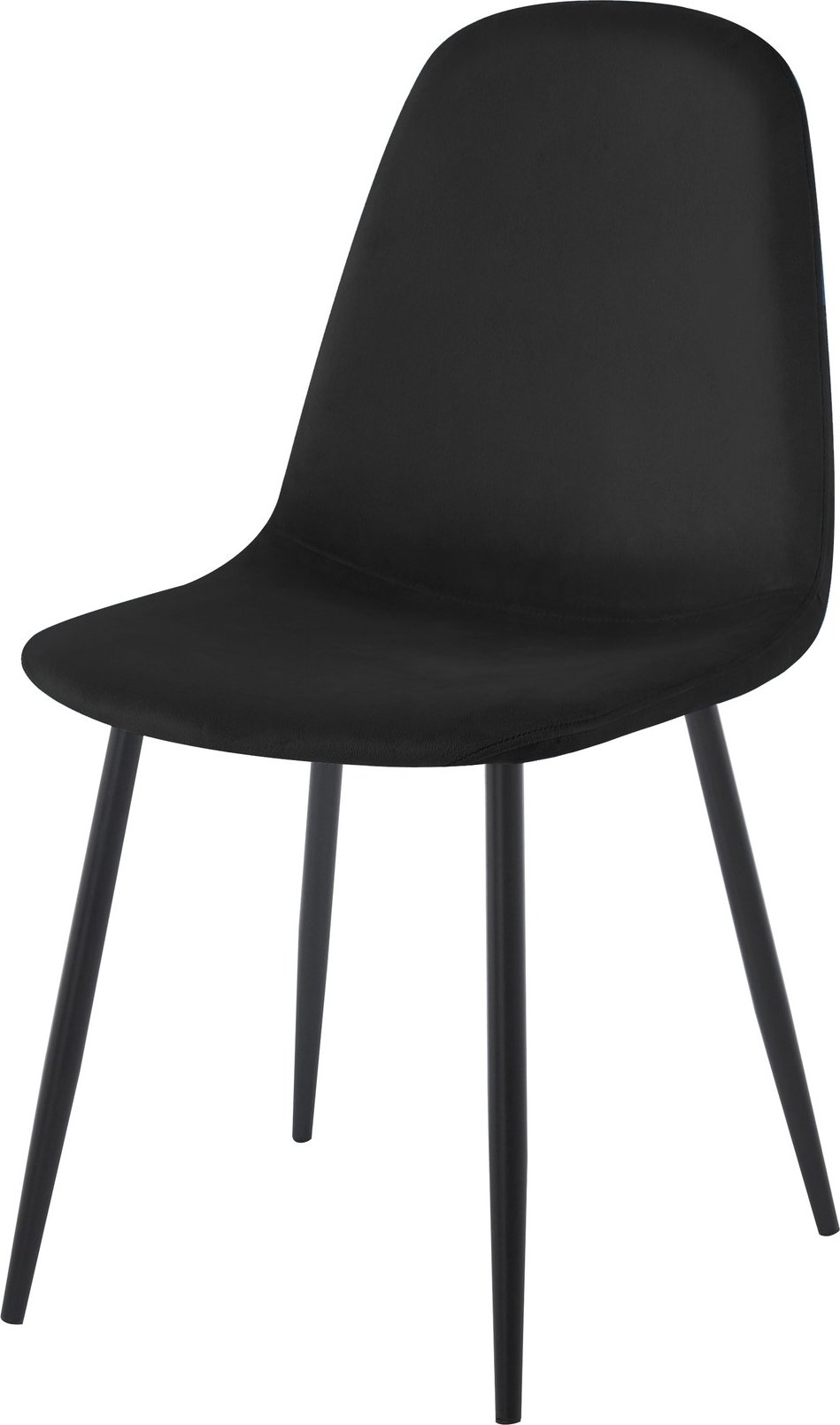 spisegruppe fra Skånska Möbelhuset, Seat spisebord 110 cm i diameter med slitesterk bordplate med høytrykkslaminat. Inkludert 4 matchende Carisma-stoler i elegant design med god sittekomfort. Møbeltrekk i svart luksuriøst fløyelsstoff med matchende smale svarte stålben.