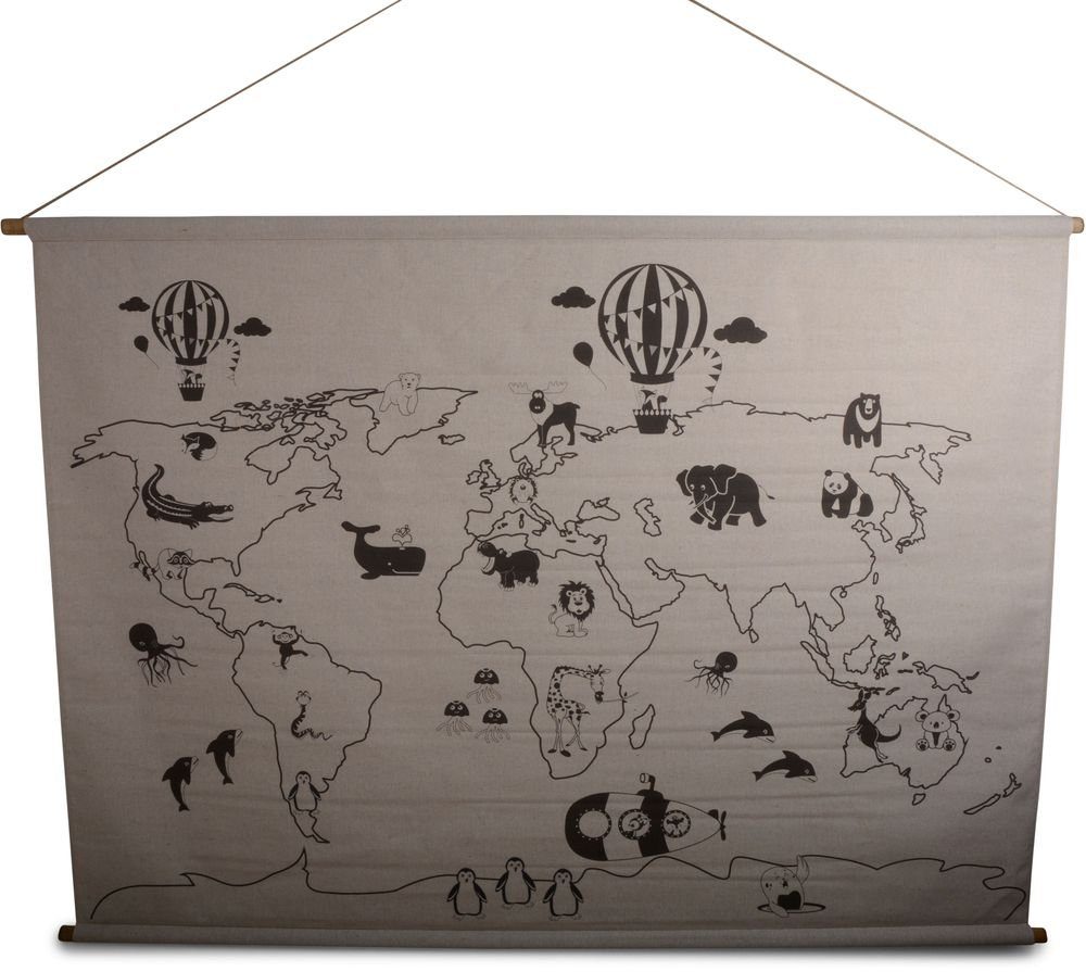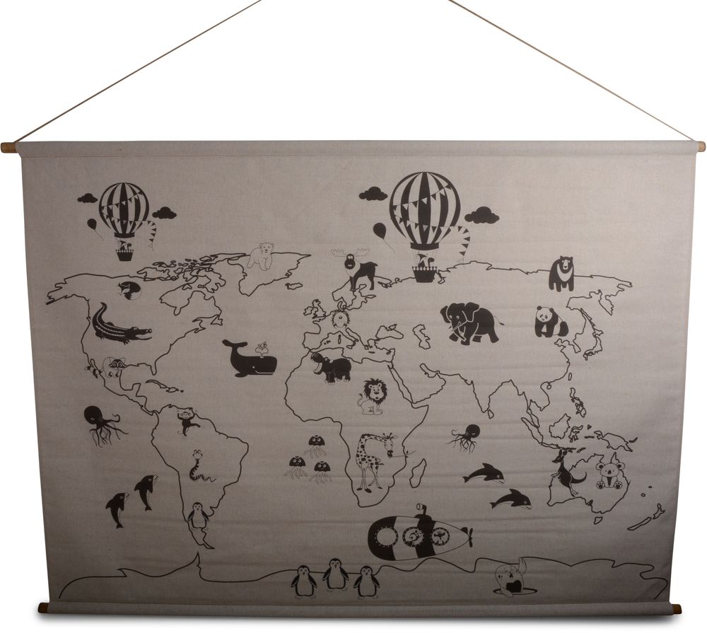 En herlig tallerken i lin tekstil med motiv av verdenskart.