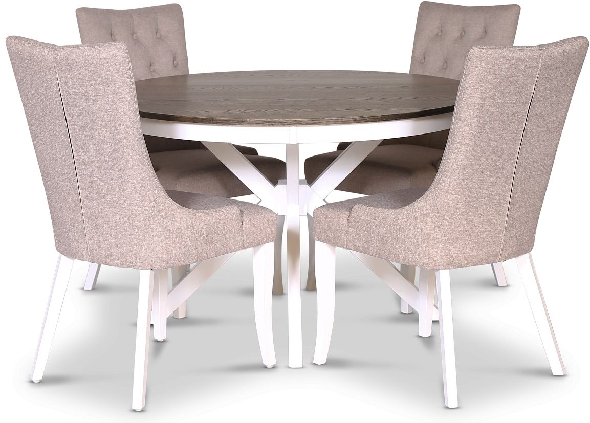 Skagen spisegruppe 120 cm inkl. 4 stk. Saga beige stoler - Hvit/Brunoljet eik