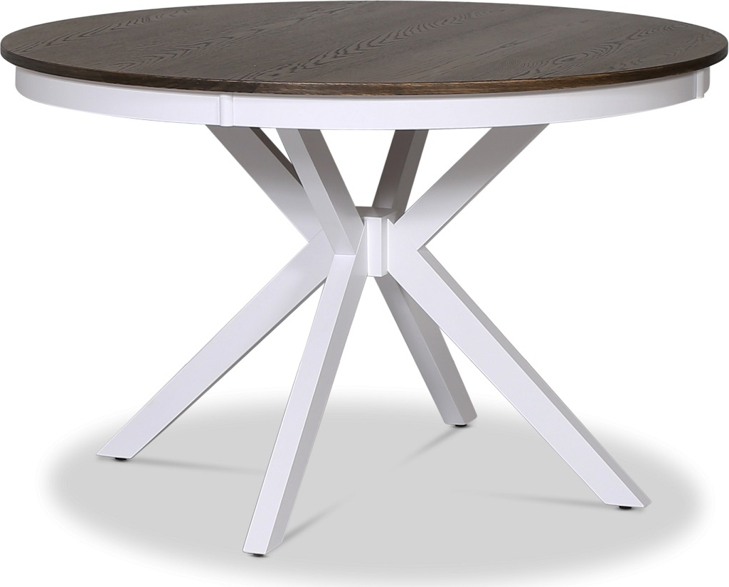 - Skagen spisegruppe; rundt spisebord Ø120 cm - Hvit / brunoljet eik med 4 Fårö stoler (Ribber i ryggen) med svart PU-sete